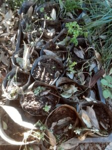 ポット苗のパセリに、水やりをしました。渇いている寒の内は、水が、貴重です。
