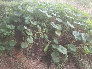 堆肥に、種を、まいたカボチャが、成長して、きました。こちらも、元気です。