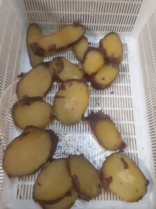 仕上がる干し芋 Posted on 2025年12月7日 by ninnjinnya 3日干した芋が、仕上がりました。甘い味わいで、犬と一緒に、楽しんでいます。 Published by ninnjinnya View all posts by ninnjinnya
