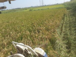 稲刈りが、進みます。暑さで、田んぼが、乾いて、はかどります。