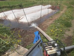 苗代に、水を、入れています。高温が、予想され、笊田なので、毎日、水が、欠かせません。