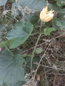 こぼれ種から、生えた冬瓜が、でき始めました。これから、大きくなっていきます。