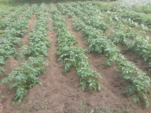 成長してきたじゃがいもの畝間の草を、取り、土寄せしました。もう少ししたら、花が、咲きそうです。