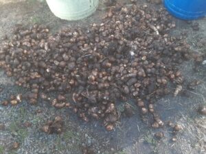 今シーズン最後の里芋を、水洗いして、天日乾燥を、しています。あぐれっしゅ日高に、出品予定です。