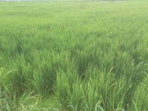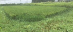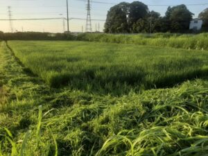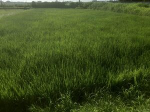 田んぼに、米糠を、お礼肥えしました。彦生えの稲が、大きくなって、いました。ひと手間かけて、発酵微生物の力を、かりて、来年も、味わい深いお米を、育てていきます。