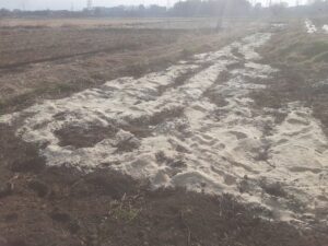 収穫した里芋の跡に、米糠を、漉き込んで、ゆっくりと、冬場の土づくりを、進めていきます。