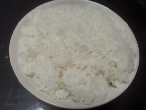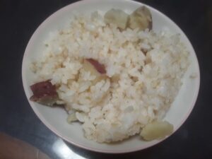 ザクぎりにしたさつまいもを、ご飯と、一緒に、炊いたさつまいもご飯が、ホクホクして、美味しいです。