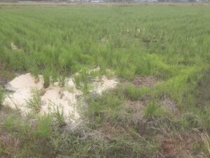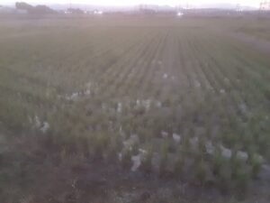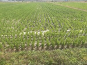 田んぼに、米糠を、お礼肥えしました。彦生えの稲が、大きくなって、いました。ひと手間かけて、発酵微生物の力を、かりて、来年も、味わい深いお米を、育てていきます。
