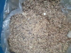 米糠に、えひめAIという微生物たっぷりのエキスを、まぶして、おからを、混ぜて、自家製配合飼料を、作って、育てています。冬場は、2-3日したら、発酵熟成して、ホカホカとした湯気が、立ち、パンのような芳醇な香りが、出来上がりを、知らせてくれます。