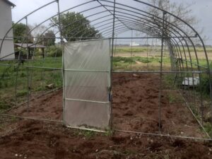 破れたハウスの片側の柱を、解体して、2年の間に、根張った木の根や、笹竹の根を、トラクターで、起こしました。自然に、手を、かけることで、辛うじて、保てる人の暮らしを、痛感します。無理は、禁物ですが、大変さを、クリアできると、後が、楽です。今年は、こちらを、プール苗代に、します。